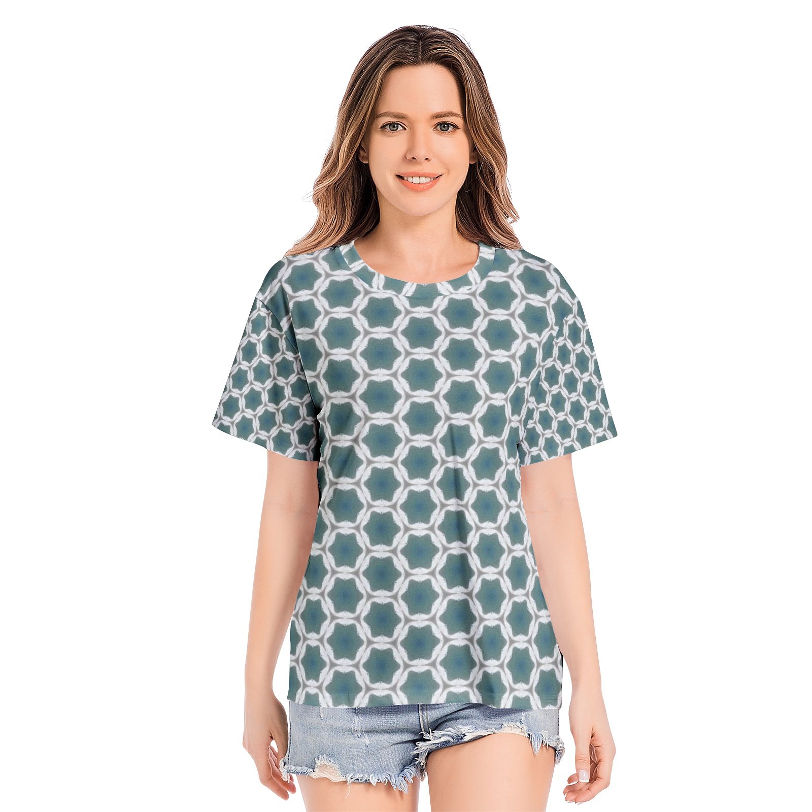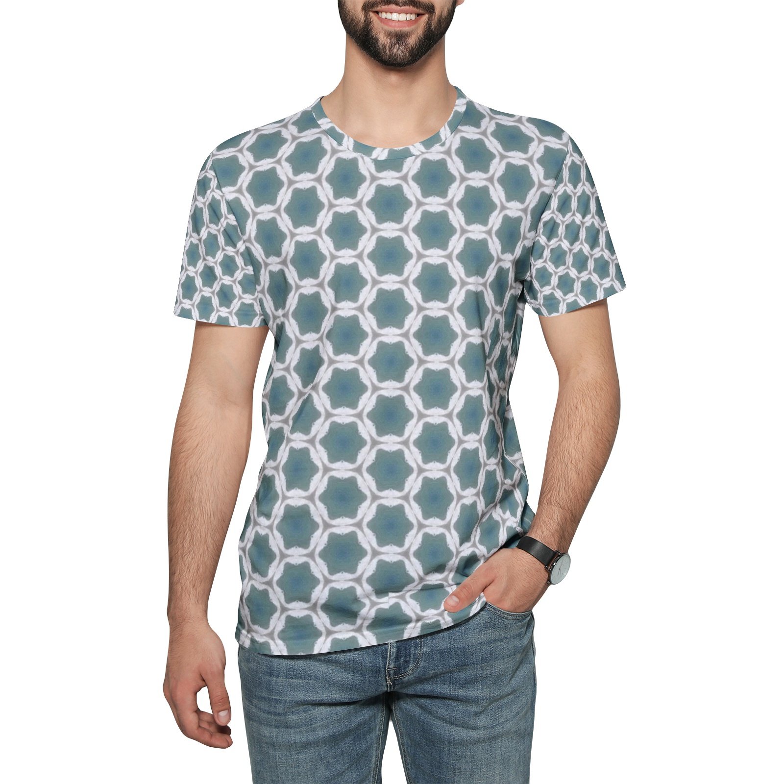 Pale blue geometric designed art makes a comfy and stylish tee!