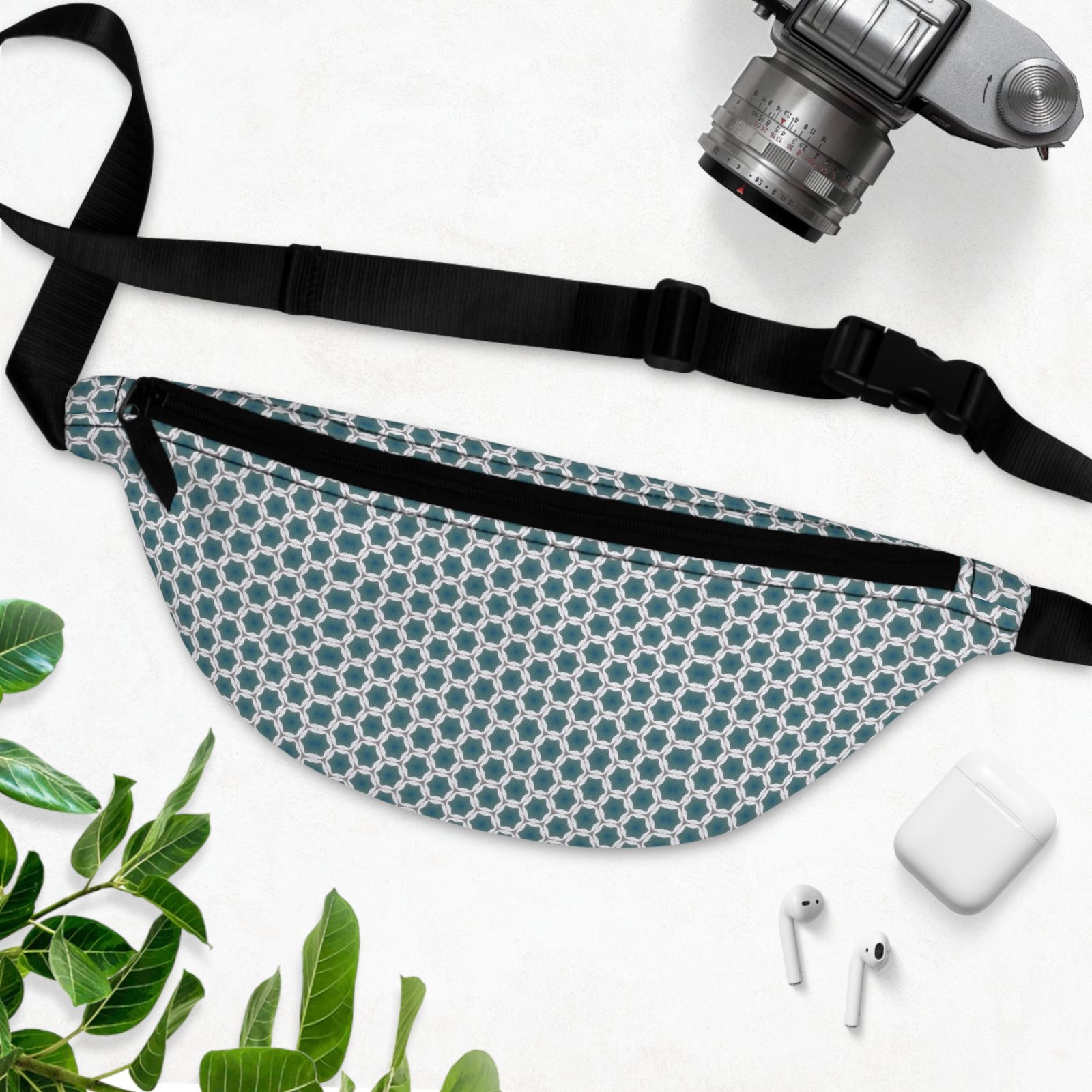 Pale Blue Geometric Fanny Pack — Hands-Free Travel & Festival Waist Bag