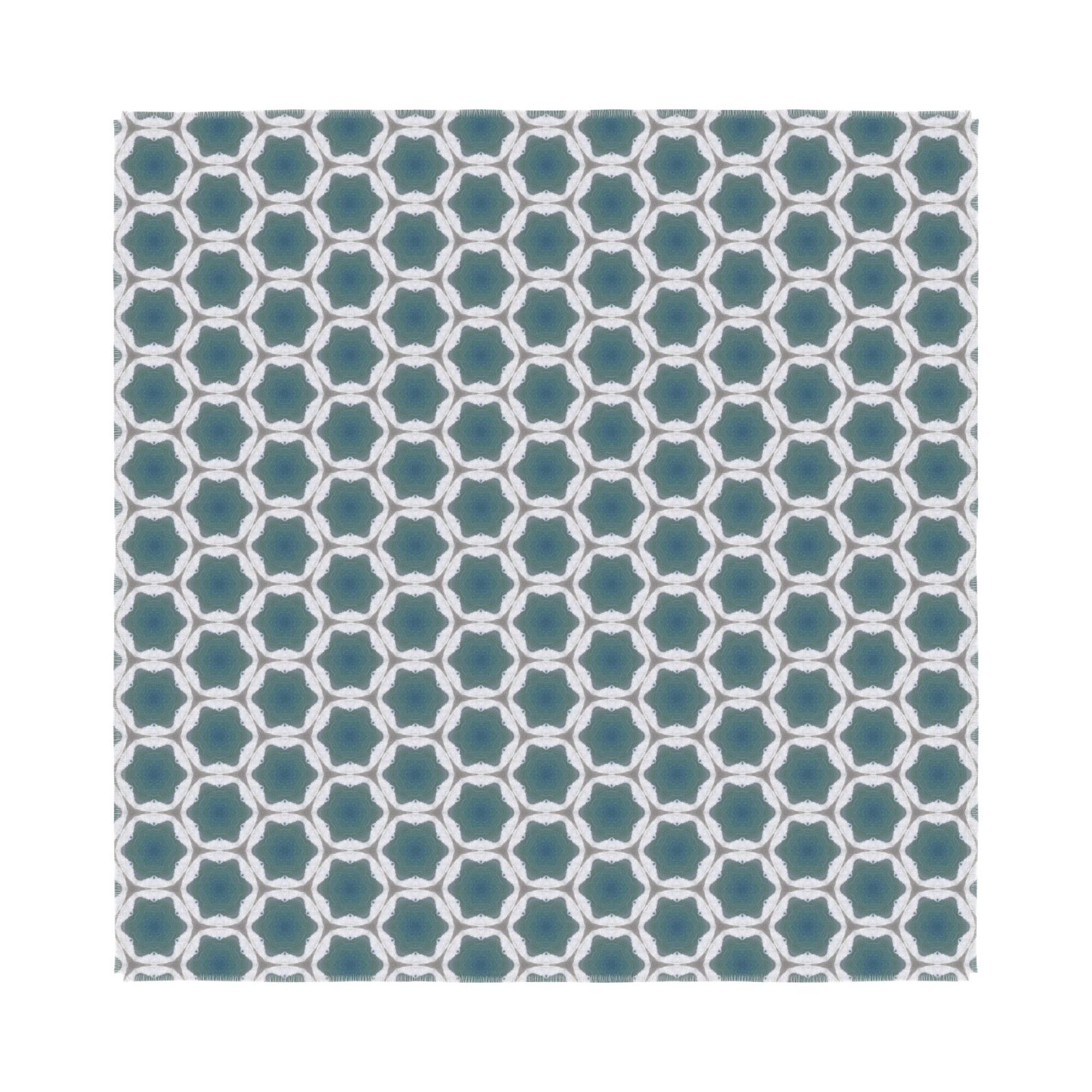 – White/grey woven reverse with 1″ printed fringe detail
